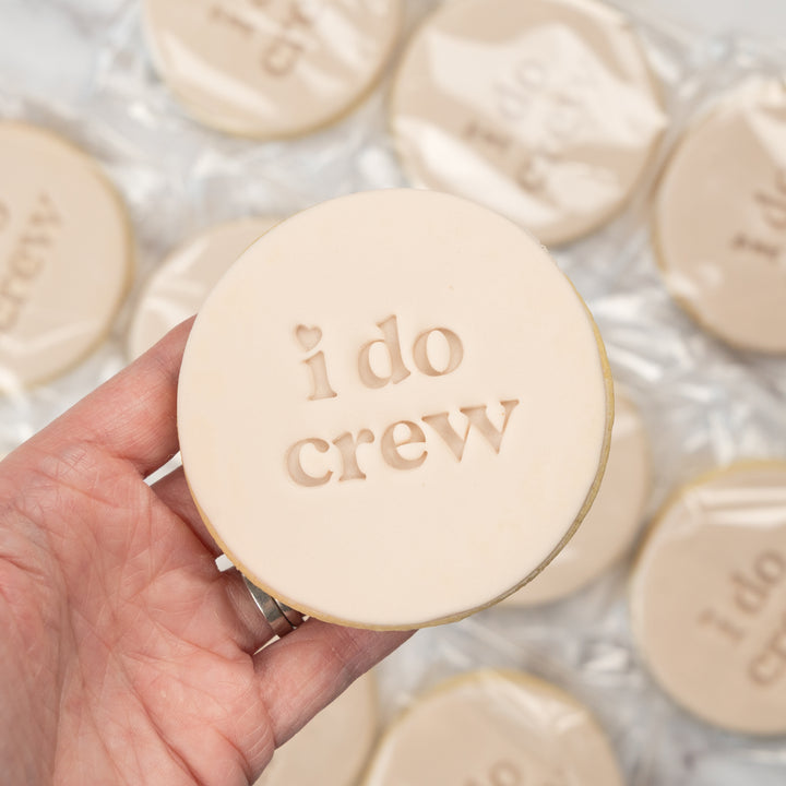 Celebrate your hen party in style with our delicious I Do Crew Iced Biscuits – the perfect sweet treat for your bride tribe. Lovingly handcrafted, each biscuit is beautifully iced with a soft, blush-toned finish and embossed with the words "I Do Crew," making them a delightful addition to your celebration.