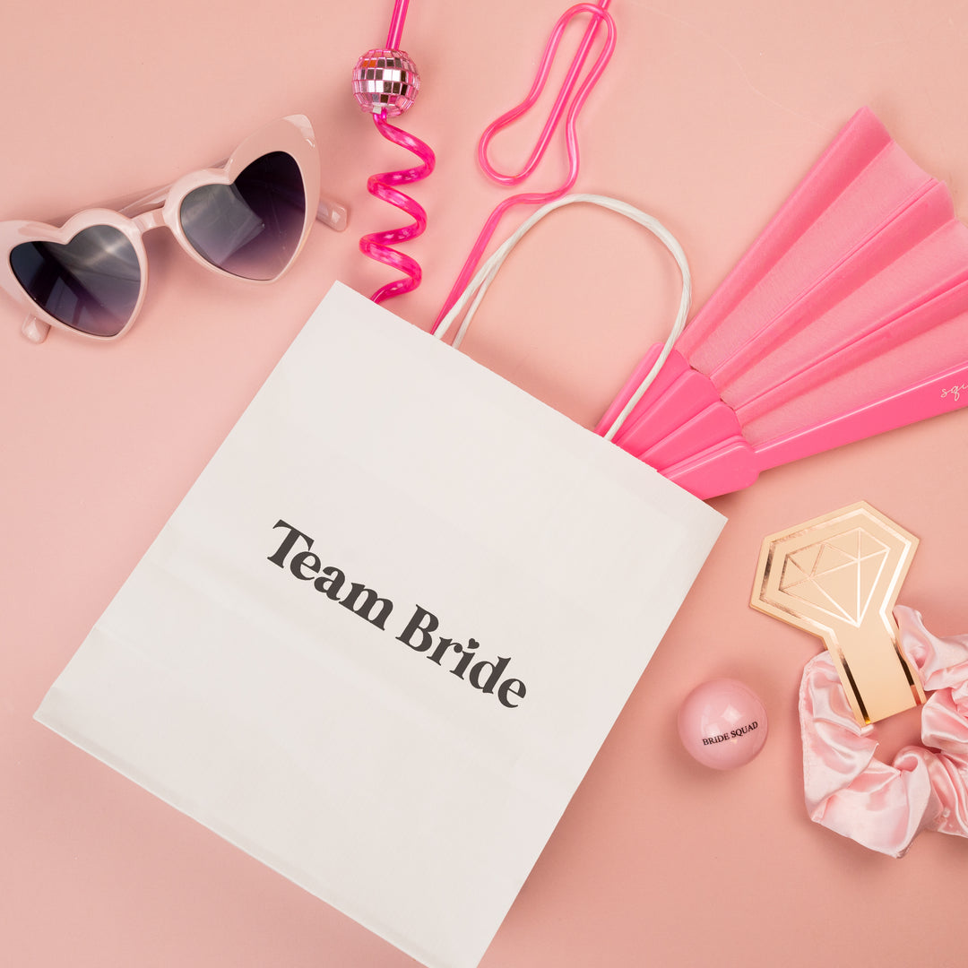Add the perfect finishing touch to your hen party favours with our Team Bride White Paper Bag! Chic, simple, and super handy, this stylish paper bag features elegant Team Bride lettering and is ideal for filling with treats, mini gifts, or pamper goodies for your bride tribe.