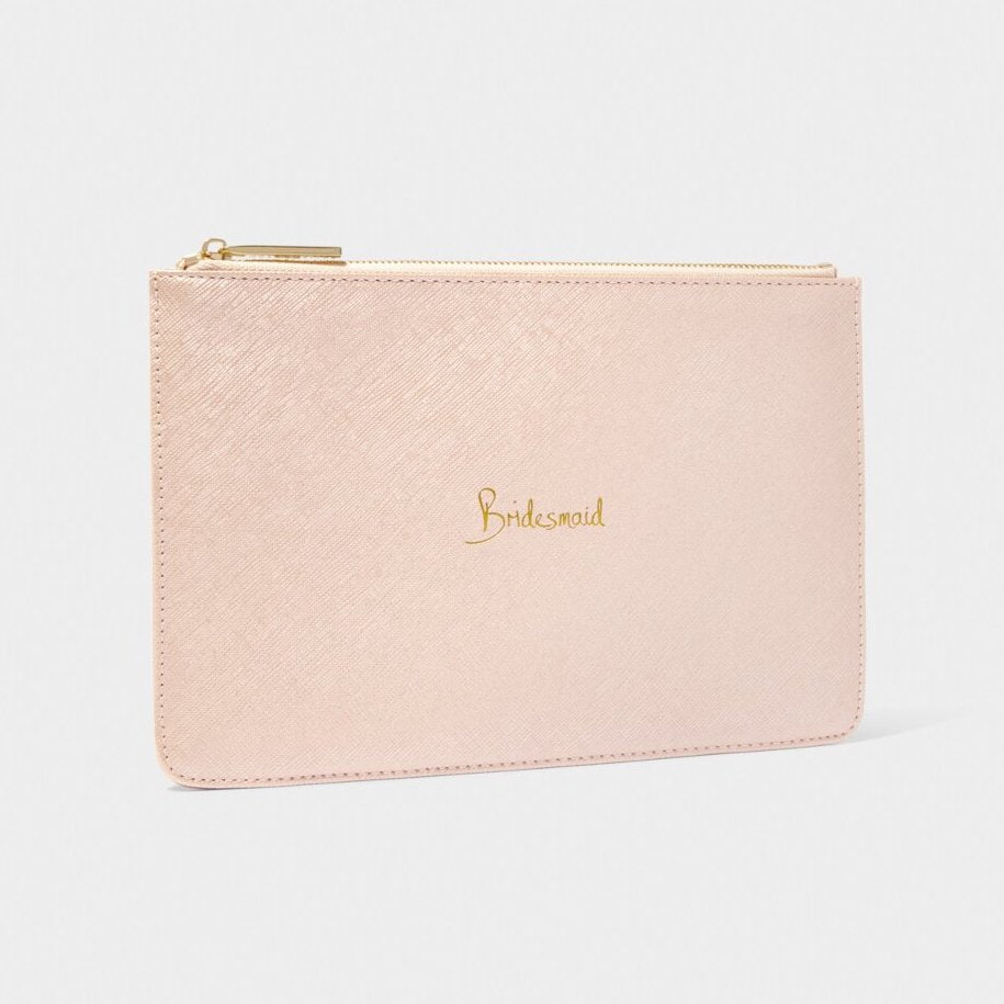 The cross hatched design sets off the rose gold colour perfectly, and the gold tone hardware and 'Bridesmaid' wording on the pouch is the icing on this pretty sweet cake.