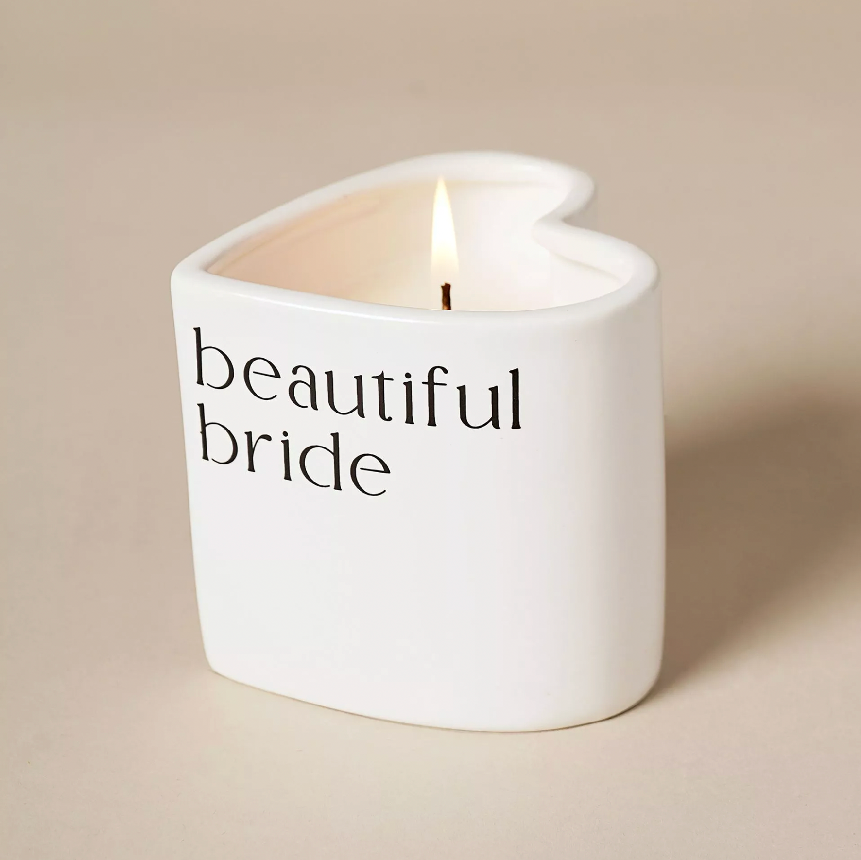 Celebrate the bride-to-be with this elegant off-white heart-shaped ceramic candle, a beautiful keepsake she’ll adore long after the big day. Finished in a soft blush pink with a modern, minimalist script reading “beautiful bride,” it’s the perfect blend of sentimental and stylish. The romantic heart-shaped design makes it extra special, while the matching presentation box ensures it’s instantly gift-ready for bridal showers, hen parties, or wedding morning surprises.