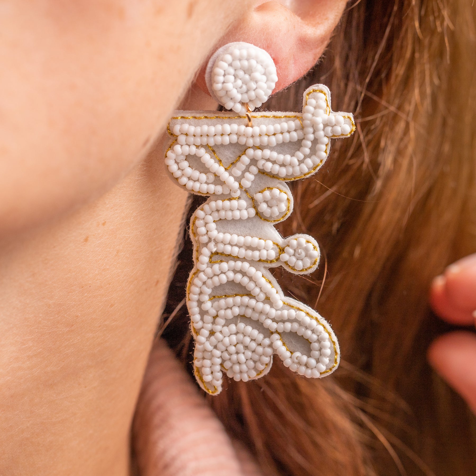 Accessorise for a walk down the aisle with these beautiful and unique "BRIDE" script beaded earrings! Handcrafted with love by artisans in Jaipur, India, these little beauties are sure to be the perfect finishing touch for your big day attire. Let's get hitched!