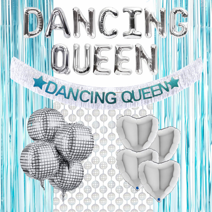 • DANCING QUEEN 16" Silver Letter Balloons: Let the spotlight shine on the ultimate party vibe with these glamorous balloons, perfect for setting the scene.